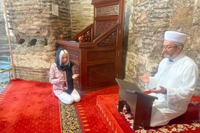 Müslüman olmak istediğini açıklayan genç kadın, İznik İlçe Müftüsü Üzeyir Yavaş ile birlikte ezanın okunduğu Ayasofya Camiinde Kelime-i Şahadet getirerek Müslüman oldu.