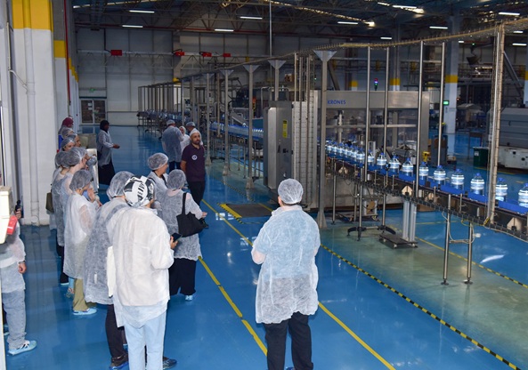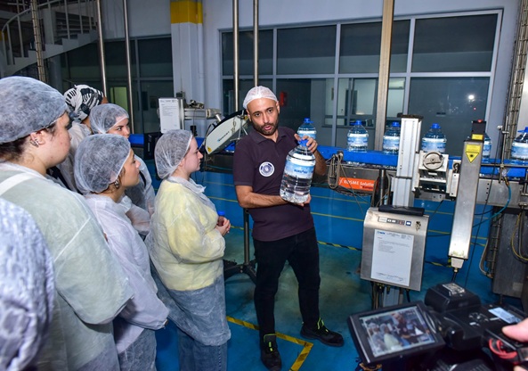 Cosme Crones 200 ml bardak su ve 19 litre geri dönüşümlü damacana hatları hakkında detaylı bilgiler alan gençler, Cosme hattındaki ham maddeden sevkiyata kadar uzanan üretim hikâyesini uzman ekiplerden dinledi.