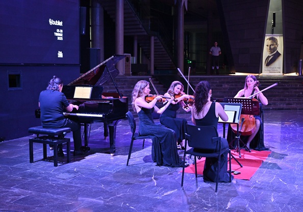 Quartet’in zarif yaylı tınıları ile Elivar’ın etkileyici piyano yorumlarının sahnelendiği gecede, klasik müzik repertuarının seçkin eserleri Bursalılar için buluştu.