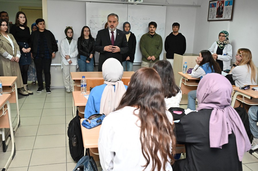 Bursa Büyükşehir Belediye Başkanı Alinur Aktaş, BUSMEK Hürriyet Kurs Merkezi'nde üniversite sınavına hazırlanan öğrencilerle bir araya geldi. Geçtiğimiz yıl BUSMEK Hazırlık Kurslarında eğitim alarak üniversiteye yerleşen öğrenciler de ziyarette Başkan Aktaş'a eşlik etti. Burada gençlerle tecrübelerini paylaşan Başkan Aktaş, tüm branşlar için ilginin oldukça fazla olduğunu söyledi. Üniversiteye Hazırlık Kursları sayısının Mustafakemalpaşa ve Karacabey'in de eklenmesiyle 6'ya yükseldiğini hatırlatan Başkan Aktaş, "6 branşla başlayan BUSMEK ateşi, 18 yıllık süreç zarfında artık koskoca bir aileye döndü. 13 ilçede 25 farklı mekanda yılda 18 - 20 bin kursiyerin eğitim gördüğü koca bir çınara dönüştü. Kurulduğu günden bu yana 541 farklı branşta 300 bin kişiye eğitim verildi. 2023 - 2024 eğitim öğretim yılında 20 binden fazla kayıt aldık. BUSMEK aynı zamanda ilk yılında sınava girip, üniversiteye yerleşemeyen öğrencilerimiz için de hazırlık kursları tertip ediyor. Şu an içinde bulunduğumuz Hürriyet Üniversiteye Hazırlık Kursumuz en büyük kurs merkezlerimizden bir tanesi. 650 öğrencimiz burada eğitim görüyor. Toplamda Orhangazi, Vakıf, Naim Süleymanoğlu Spor Kompleksi ve burası olmak üzere 4 ayrı merkezde olmak üzere 1050 öğrencimiz ve Karacabey ile Mustafakemalpaşa ilçelerimizdeki kurs merkezlerimize kayıtlarımız devam ediyor. Dolayısıyla 6 kurs merkezimizde bu iş ve işlemlerimizi yapacağız" diye konuştu.