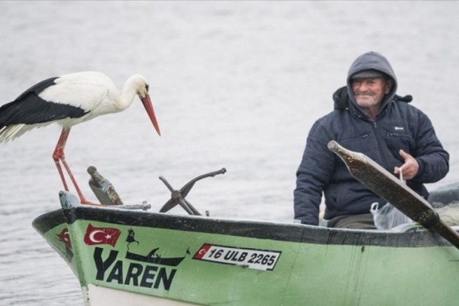 Bursa'nın Karacabey ilçesinde balıkçı Adem Yılmaz ile kurduğu dostlukla tanınan Yaren leyleğin bu yıl 4 yavrusu dünyaya geldi.