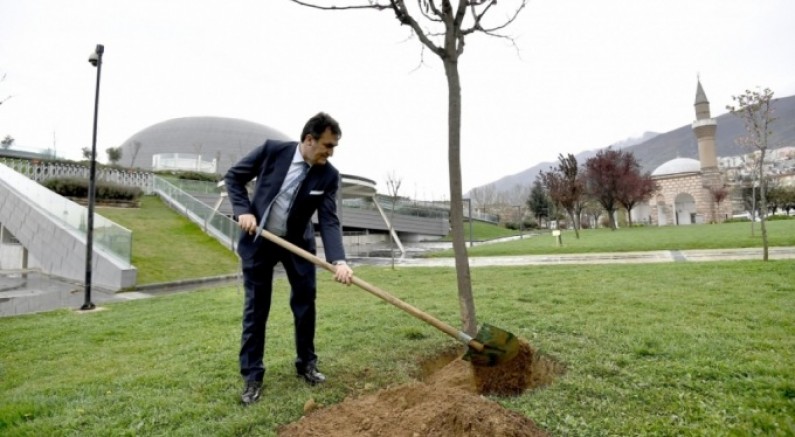 Osmangazi Belediye Başkanı Mustafa Dündar, yeşili önemsediklerini, bu doğrultuda çalışmalar yaptıklarını belirterek, "Göreve geldiğimiz günden bu yana yeşil alanlara ve ağaç dikimine büyük önem verdik. Şu ana kadar 1 milyon 52 bin 428 fidan ve ağaç, Osmangazi ilçemize dikildi. Bunların dışında çiftçilerimize binlerce fidan dağıtımı yaptık. Türkiye'nin en büyük çevre projelerinden biri olan Bir Milyon Fidan Kampanyası'nı hayata geçirerek sadece 2009-2014 yılları arasında 1 milyon fidan dikimi yaptık. Bursa'nın sembolü olan ve morumsu pembe tonda çiçekler açarak baharın gelişini müjdeleyen erguvan çiçeklerini ilçe merkezinde çeşitli noktalara diktik. Bursa'nın yeşil isminin yeniden kazandırılması amacıyla başlattığımız bu seferberlikte birçok okul ve kurum da bize destek oldu. Orman Bölge Müdürlüğümüz ile birlikte yürüttüğümüz kampanyamızda özellikle çocukların yer alması, onların bilinçlenmesi adına son derece önemli. Hızla artan nüfusa rağmen yeşil alan sayımız eksilmemiş artmıştır. Osmangazi'de daha yeşil, daha güzel, daha yaşanılır bir yaşam alanı inşa ettik. Buradaki tek derdimiz evlatlarımıza, yarınlarımıza daha temiz havası olan bir şehir teslim etmektir" dedi.