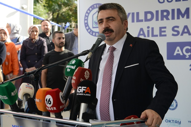 Fidyekızık, Erikli, Karaağaç ve Davutkadı Mahalleleri’ne yapılacak aile sağlığı merkezleri ile ilgili çalışmaların devam ettiğini aktaran Yıldırım Belediye Başkanı Oktay Yılmaz, “500 metrekare kullanım alanına sahip olan Güllük Kadir Atasoy Aile Sağlığı Merkezi’mizde; 5 poliklinik odası, tıbbi müdahale odası, çocuk emzirme odası, aşı odası, dinlenme odası ev ortak kullanım alanları yer alacak. 2 doktor ve 2 aile sağlığı çalışanın hizmet vereceği merkezimizin ilçemize kazandırılmasına katkı sağlayan hayırseverimiz Kadir Atasoy nezdinde tüm hayırseverlerimize teşekkür ediyorum” diye konuştu. Güllük Mahallesi’ne kazandırılan aile sağlık merkezi ve 112 acil sağlık hizmetleri istasyonu’nun Yıldırım’a hayırlı olmasını dileyen Hayırsever Kadir Atasoy, “Gücümüz yettiğince hayır işlerinde yer almaya gayret etmeye çalışıyoruz. Rabbime şükürler olsun ki bu hayrı işlemeyi bizlere nasip etti. Hayır işlemek kadar hayra aracılık etmek de önemlidir. Belediye Başkanımız Oktay Yılmaz Beyefendi’ye, İl Sağlık Müdürümüz Dr. Orkun Yıldırım’a, İlçe Sağlık Müdürümüz Dr. Ferhat Ekinci’ye bu hayır yolunda bize aracılık ettiği ve destek verdiği için çok teşekkür ediyorum” dedi.