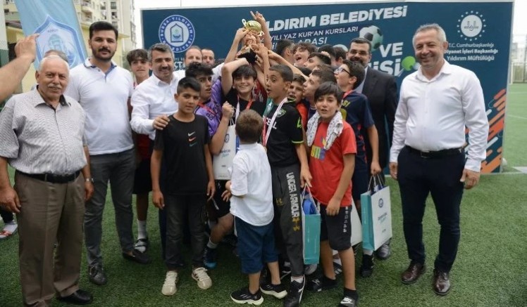 5 gün süren turnuvaya 16 Camii Kuran Kursu’ndan 220 öğrenci katıldı. Kıyasıya mücadelelerin yaşandığı bir o kadar da renkli görüntülere sahne olan turnuvaların final mücadelesine Yıldırım Belediye Başkanı Oktay Yılmaz, Yıldırım İlçe Müftüsü Ahmet Durmuş, Yıldırım Gençlik ve Spor İlçe Müdürü Mehmet Demirci, Yıldırım Belediyespor Kulübü Başkanvekili Muammer Özbey, meclis üyeleri, muhtarlar ve vatandaşlar katıldı. Genç sporcuların tezahürat ve sevgi gösterileriyle karşılanan Yıldırım Belediye Başkanı Oktay Yılmaz, “Çocuklarımız ve gençlerimiz bizim geleceğimiz. Onlara yapılan her yatırım geleceğe çakılmış bir çividir. Bu nedenle Yıldırım’da hizmet önceliği çocuklarımızın ve gençlerimizindir. Çocuklarımızın ve gençlerimizin; fiziksel, sosyal ve duygusal gelişimlerinde sporun çok önemli yeri var. Bu nedenle Yıldırım’ı bir spor kenti yapmak ve sporu tabana yaymak için çalışmalarımız sürüyor. Tüm vatandaşlarımızın kolaylıkla ulaşabileceği spor tesislerini ilçemize kazandırdık ve yenilerini inşa etmeye devam ediyoruz” ifadelerini kullandı.
