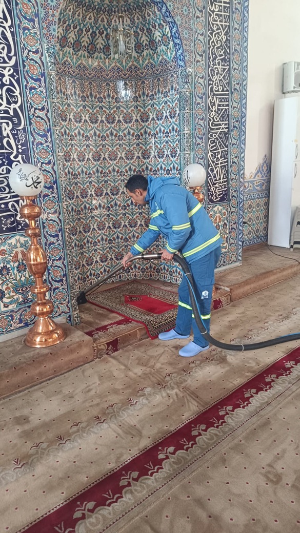 Temizlik İşleri Müdürlüğü ekipleri tarafından yürütülen çalışmalar kapsamında cami içleri ve çevrelerinin temizliği titizlikle yapılıyor. Belediye ekipleri, cami içlerinde genel temizlik yaparken cami bahçelerinde ise çöp toplama, süpürme ve yıkama işlemleri gerçekleştiriyor. Ayrıca oturma alanları, şadırvanlar ve abdesthaneler de detaylı bir şekilde dezenfekte ediliyor.