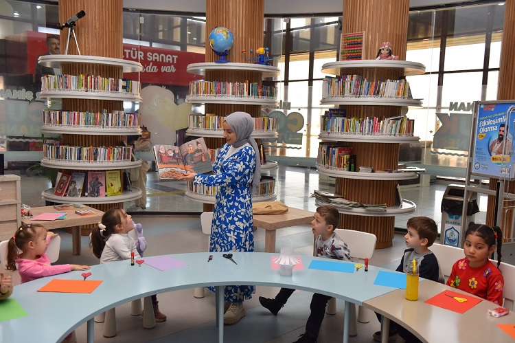 BURSA- Yıldırım Belediyesi, kültür ve sanat etkinlikleri çerçevesinde 4-7 yaş grubundaki çocuklara yönelik ‘Masal Saati’ etkinliği düzenliyor. Mimar Sinan Çocuk Kütüphanesi’nde gerçekleştirilen programlarda Çocuk Kitabı Yazarı Feyza Kartopu, her hafta farklı eser ve konularla çocukların hayal gücünü geliştiriyor. ‘Masal Saati’nde bu hafta Ramazan temasıyla önce ‘Çıtır Çıtır Bir Bayram Macerası Kitabı’ anlatıldı.