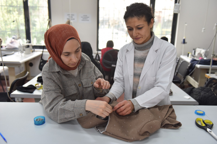 Yıldırım Belediyesi'nin Sosyal İnovasyon ve Girişimcilik Merkezi’nde hünerli eller için hayata geçirdiği kadın eğitim ve girişimcilik merkezlerinde eğitimler devam ediyor. Kurslara katılan kadınlar, usta öğreticilerden aldıkları eğitimlerle dikiş ve nakışın inceliklerini öğreniyor. Haftanın 6 günü devam eden eğitimlerde, ortaya çıkan el emeği göz nuru ürünler, belediyenin pazar alanlarında açtığı stantlarda görücüye çıkıyor. Kurslarda birlikte çalışarak üretim yapan kadınlar hem sosyalleşiyor hem de aile ekonomisine katkı sağlıyor.