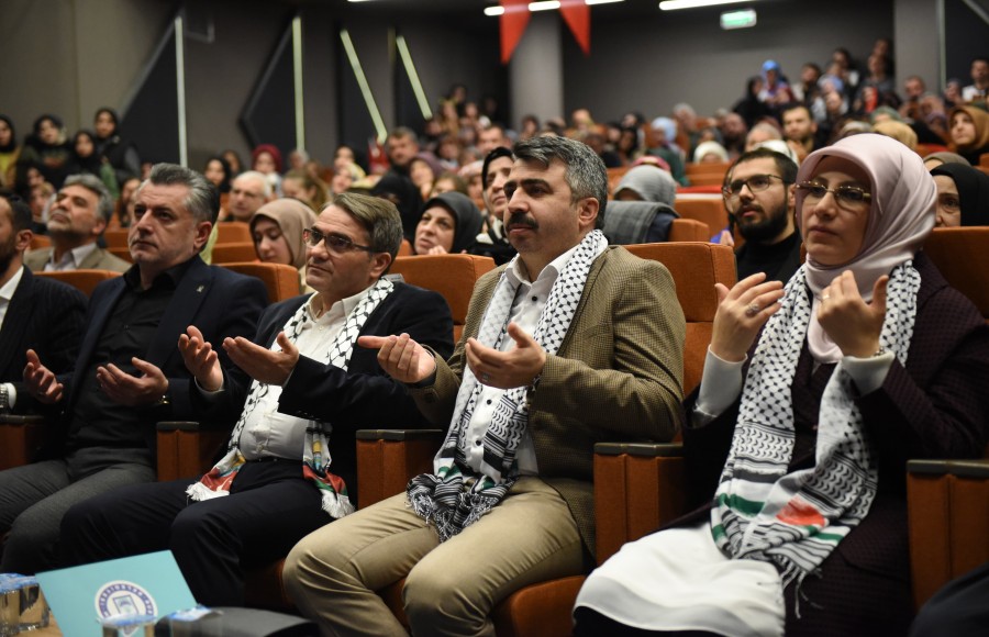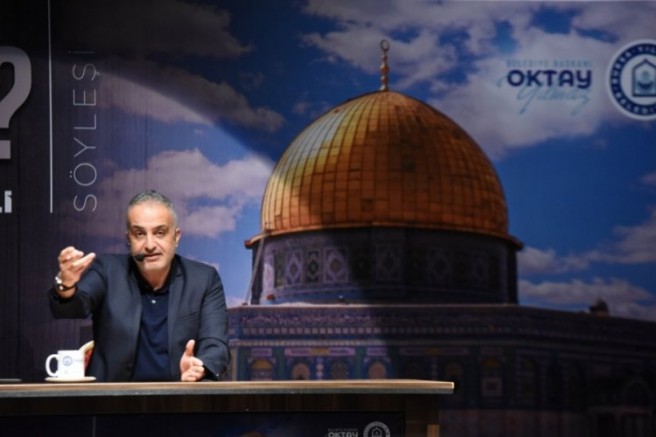 Ardından sahneye çıkan Yıldırım Belediye Başkanı Oktay Yılmaz, "Kudüs, insanlığın merkezi, bizim gönül coğrafyamızın incisidir. Müslümanların kutsal mabedidir. 75 yıldır İsrail zulmü karşısında sadece ve sadece yüreklerindeki imanın gücüyle mücadele eden, insanlığın ve Müslümanların haysiyetini koruma görevini üstlenen Filistinli kardeşlerime şükranlarımı sunuyorum. İnançlarını ve vatanlarını savunurken şehit düşen kardeşlerimize Rabbimden rahmet diliyor ve bu mücadelede yaralanan gazilerimize acil şifalar diliyorum. Terörle mücadele operasyonlarının devam ettiği bölgelerden ne yazık ki acı haberler aldık. Vatanımızın bölünmez bütünlüğü, milletimizin huzuru ve güvenliği için gözünü kırpmadan şehitlik mertebesine yürüyen tüm kahramanlarımızı rahmet ve minnetle anıyorum. Bekir Develi'ye bu samimi sohbeti ve anlattıkları için bir kez daha teşekkür ediyoruz. En kısa zamanda Özgür Aksa'da buluşmak duasıyla" diye konuştu.