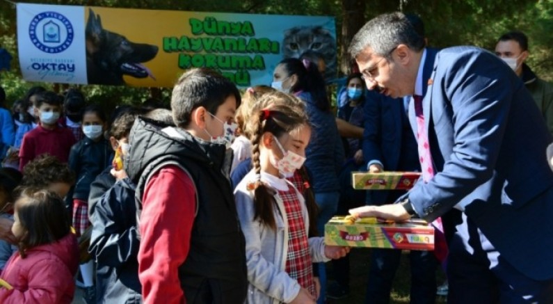 Sokaktaki can dostlarına şefkat elini uzatarak sevimli dostlarının barınması ve tedavisinin yapılmasının yanı sıra onları sahiplendirerek yeni yuvalarına kavuşturan Yıldırım Belediyesi, sokaktaki dostlarının ihtiyaçlarını önceliyor. Yıldırım Belediyesi Veteriner İşleri Müdürlüğü’ne bağlı ekipler, sokak hayvanlarına verdiği hizmetlerin yanı sıra, Cumalıkızık Sahipsiz Hayvan Bakımevi ve Tedavi Merkezi’nde minik dostlarını misafir ederek onların çevreye, doğaya ve hayvanlara karşı duyarlı olmalarını sağlamak amacıyla birbirinden farklı eğitim çalışmaları düzenliyor. Bu kapsamda Yıldırım Belediye Başkanı Oktay Yılmaz, 4 Ekim Hayvanları Koruma Günü’ne dikkat çekmek için Cumalıkızık Sahipsiz Hayvan Bakımevi ve Tedavi Merkezi’nde 100'ü aşkın anaokulu ve ilkokul öğrencisi ile bir araya geldi. Çocuklarla birlikte barınağı gezen Başkan Oktay Yılmaz, sonrasında çocuklara farkındalık oluşturmak için kedi maması dağıttı.
