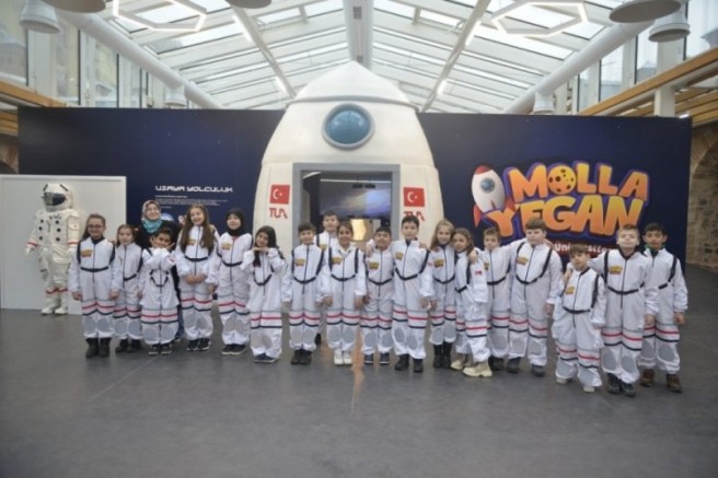 Yıldırım İlkokulu 4’üncü sınıf öğrencilerinin ziyareti ile başlayan programlarda, çocuklar önce astronot kıyafeti giyiyor, sonrasında roket modelin içinden geçerek uluslararası uzay istasyonu modülünde bir astronotun 24 saatini gözlemleyebilme imkânı buluyor.