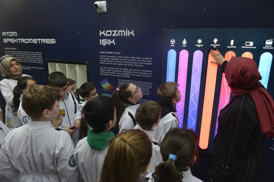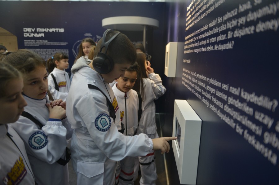 Sergi alanındaki karadeliklerin oluşumu, manyetik alanın doğası, gezegenlerin sesi, gece gündüz oluşumu, güneş sistemi ve evrendeki büyüklükleri, büyük patlama gibi bilgileri onlara özel dizayn edilmiş düzenekler ve donanımlar eşliğinde öğrenen uzay meraklıları son olarak dijital gösterim alanında izledikleri film sonrası sen evrensin uygulamasında yaptıkları roket ve astronot resimlerinin dev ekranda hareketli halini görüyor. Yaklaşık 2 saat süren uzay macerası sonunda astronotluğa merak salan çocuklar, verilen eğitimler için belediye ekiplerine teşekkür etti.