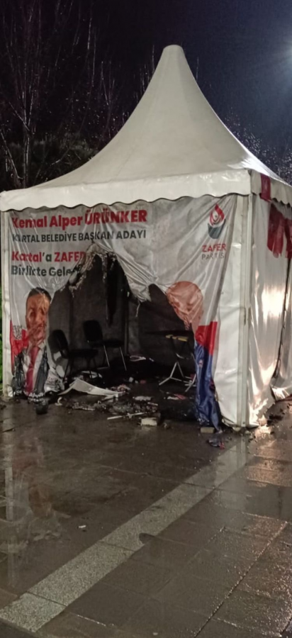 Bu sefer de Zafer Partisi'nin Kartal'da bulunan seçim çadırı kimliği belirsiz kişi veya kişilerce yakıldı. Konuyla ilgili Zafer Partisi Genel Başkanı Ümit Özdağ'dan açıklama geldi.