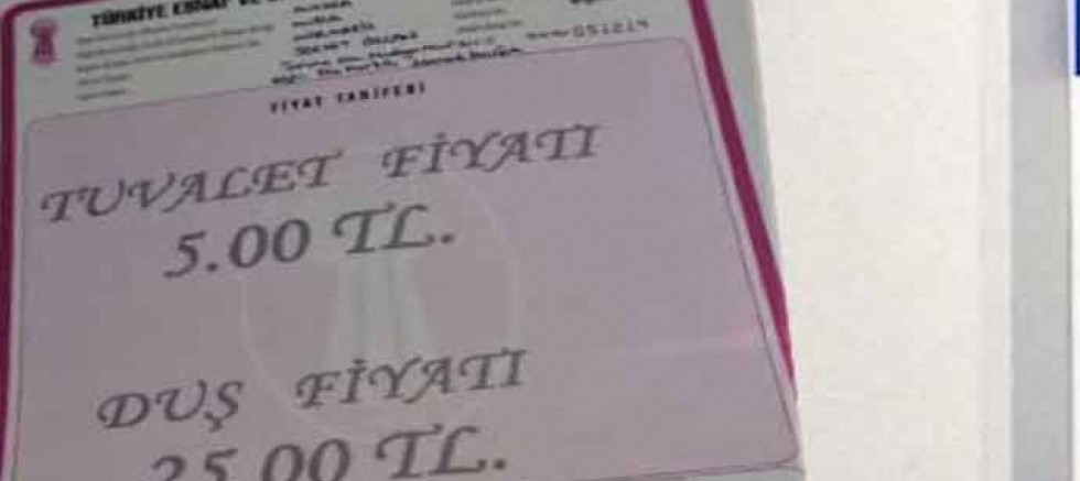 Muğla’nın Marmaris ilçesindeki umumi tuvaletin yeni fiyatı Marmaris Esnaf ve Sanatkarlar Odası kararıyla 5 lira oldu. Sosyal medyadan paylaşılan yeni fiyat belgesine birçok kişiden tepki gelirken; Tuvaletin 5 lira olmasıyla birlikte duş fiyatı da 25 liraya yükseldi.