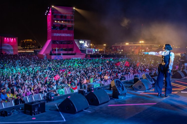 Zeynep Bastık Al Bidda Park konserinde kıyafet olarak Raisa Vanessa, mücevher olarak The Ninon tasarımı tercih etti.